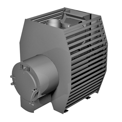 Печь имеет окраску кремнийорганической краской и от других моделей отличается самым маленьким размером и стальной дверцей. Данная печь хорошо подходит для парных помещений объемом от 4 до 12 кубов. Предпочтительна для небольших парных помещений в южных регионах России. В северных регионах при соблюдении хорошего утепления здания. Печь с двумя парогенераторами конвекционного типа. Дополнительная подача воздуха для дожига газов выводит печь на лучшие чистые режимы. Колпак, которым оборудована печь позволяет дожечь газы не в дымоходе, а еще в печи, из-за чего значительно снижается температура дымохода и исключается его засаживание. Стекло в двери позволяет не только наблюдать за живой игрой огня, но и достигать лучшей регулировки горения дров. За счет этого печь наиболее экономична и эффективна. Великолепная способность создания легкого пара ставит эту печь на высокий уровень по созданию банных паровых режимов.