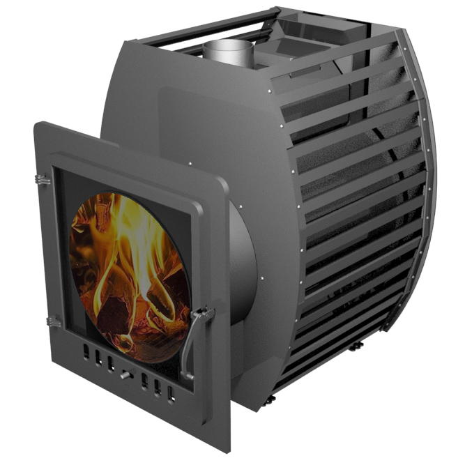 Отличается от своей предшественницы большими размерами и большим порталом со стеклянной дверцей 26". Предпочтительна для парных помещений до 18 кубов в южных регионах России. В северных регионах при соблюдении хорошего утепления здания. Печь с тремя парогенераторами конвекционного типа. Дополнительная подача воздуха для дожига газов выводит печь на лучшие чистые режимы. Колпак, которым оборудована печь позволяет дожечь газы не в дымоходе, а еще в печи, из-за чего значительно снижается температура дымохода и исключается его засаживание. Стекло в двери позволяет не только наблюдать за живой игрой огня, но и достигать лучшей регулировки горения дров. За счет этого печь наиболее экономична и эффективна. Великолепная способность создания легкого пара ставит эту печь на высокий уровень по созданию банных паровых режимов.